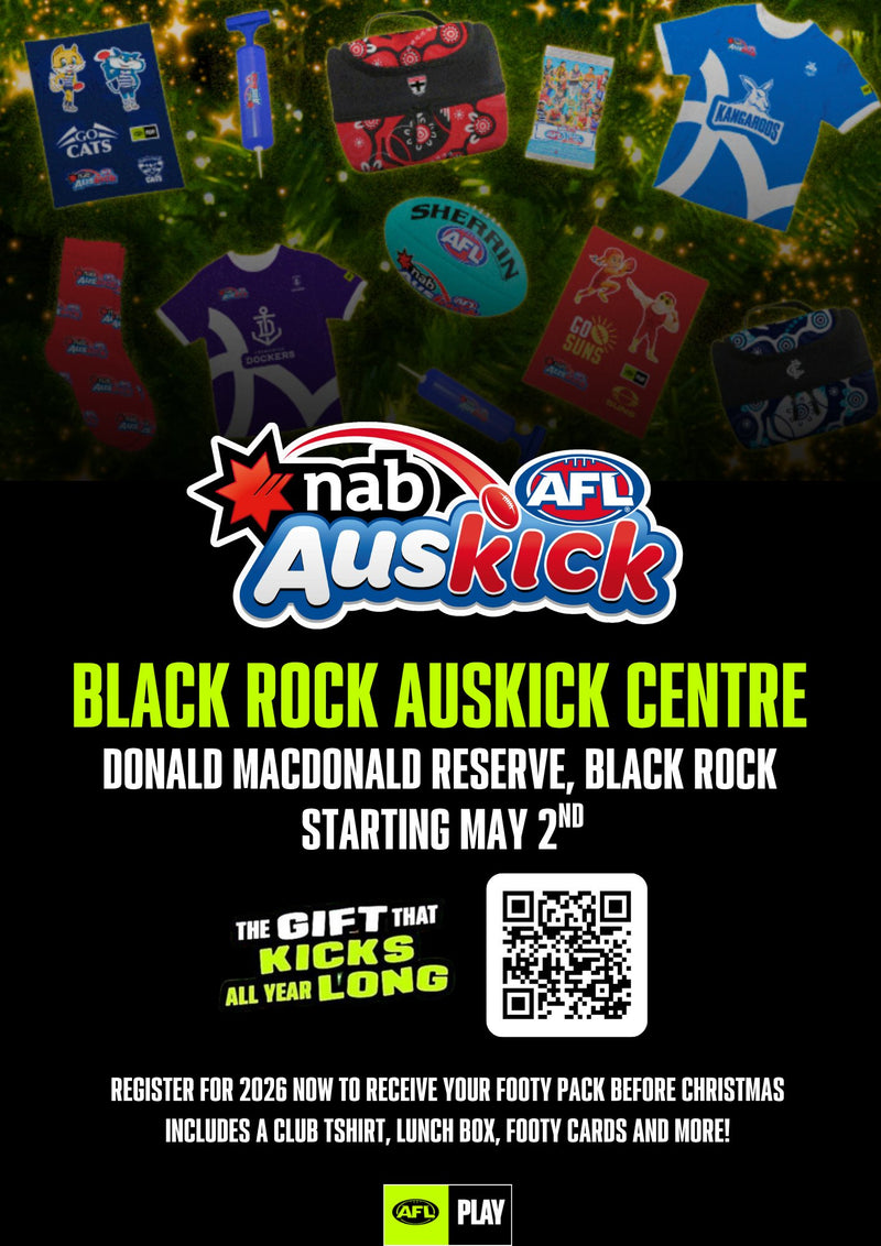 Get ready for another exciting season of NAB AFL Auskick! Auskick is the perfect way for kids to discover Aussie Rules Football through fun, hands-on activities and teamwork.