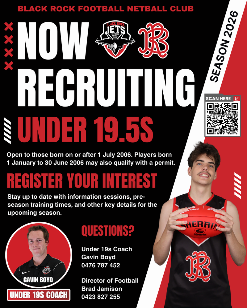 We’re building our Under 19.5s football team for season 2026, led by our brilliant coach Gavin Boyd. Join the fastest-growing club in Bayside, with brand-new facilities at Donald MacDonald Reserve, an inclusive environment, and a clear pathway into senior football.